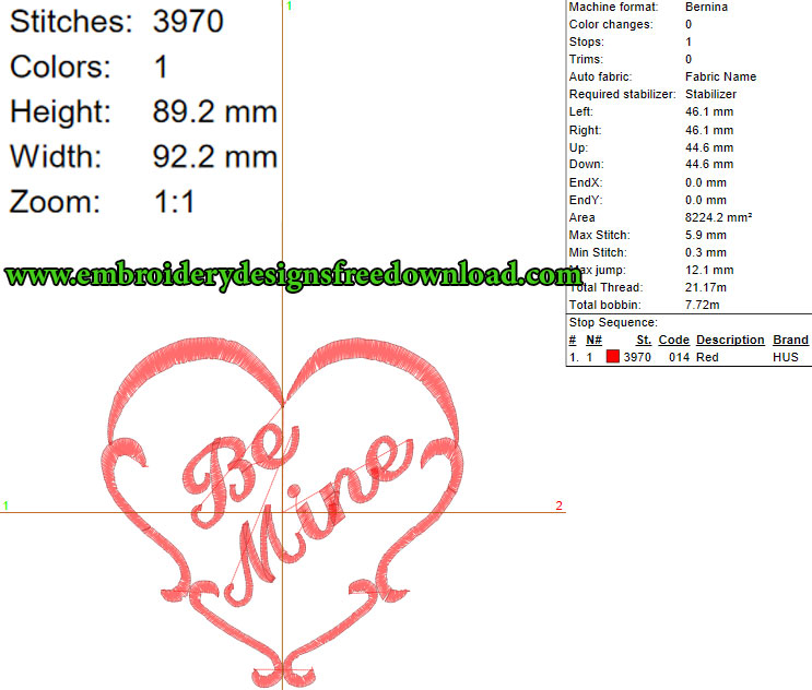 BE MINE HEART LOVE VECTOR Free Machine Embroidery Design