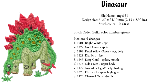 Dinosaur Free Machine Embroidery Design