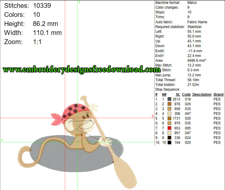 Little Monkey Pirate With His KAYAK Embroidery Design