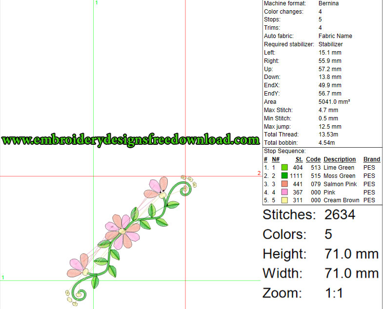 All embroidery designs typically fit a 4 x 4 hoop (or your embroidery machines standard hoop – each format has been sized for the specific standard hoop).