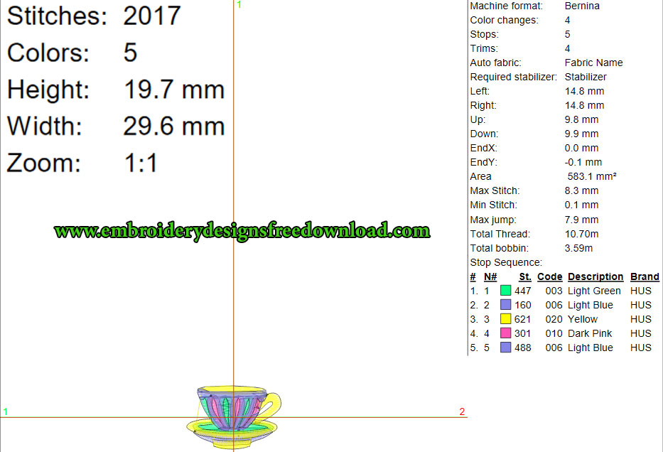 Tea Cup Set And 4 Cup Styles Free Embroidery Design