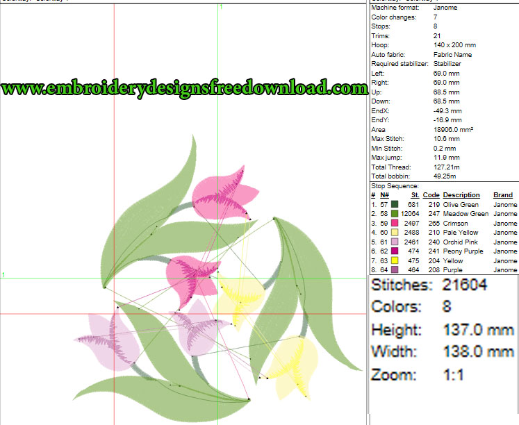 Garden Tulip Free Machine Embroidery Design